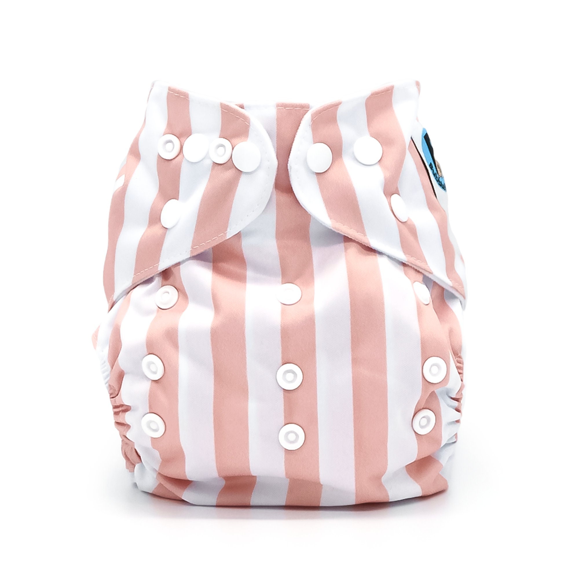 Bubble Butt Baby diapers have multiple snap positions for an adjustable rise and waist size. This design allows the cloth diaper to grow with your baby from approximately 8-35 pounds. Experiment with different snap positions to get the best fit for your baby.