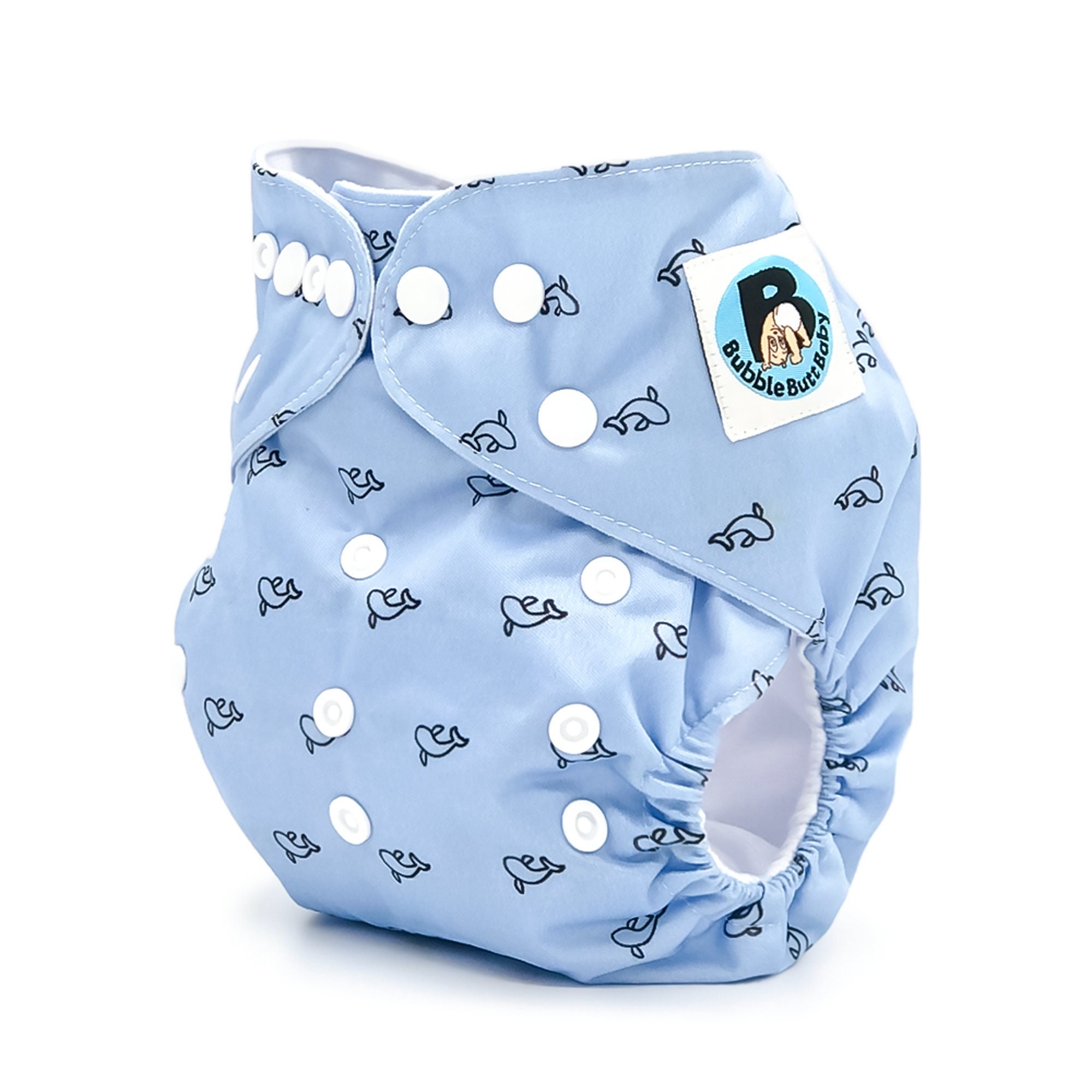 You will receive one pocket diaper in our sky blue whale print named "Cetacea". Also included is one cloth diaper insert made with three layers of microfiber.