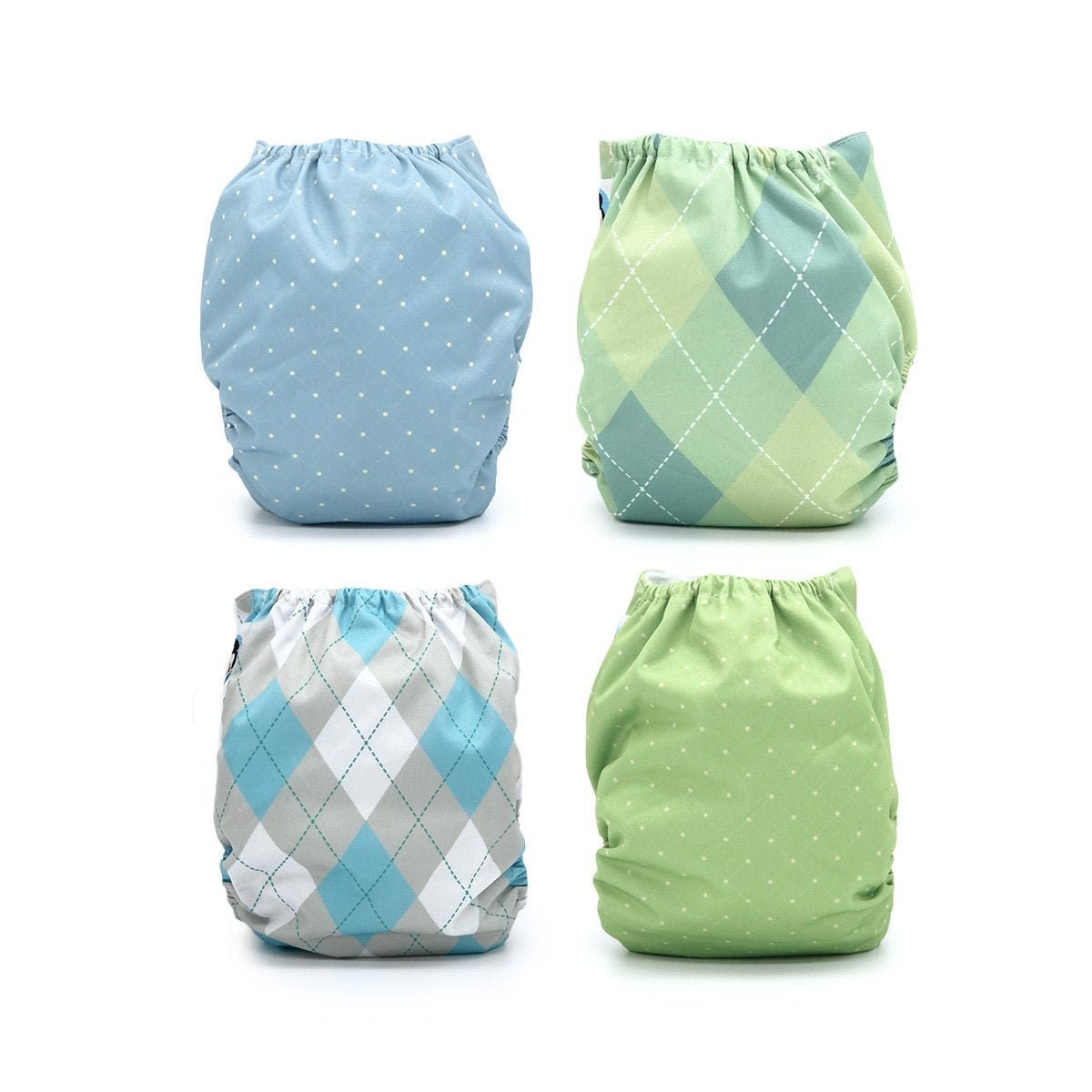 - 4 pocket diapers in our timeless prints: Wellington, Harper, Oxford, and Fairway