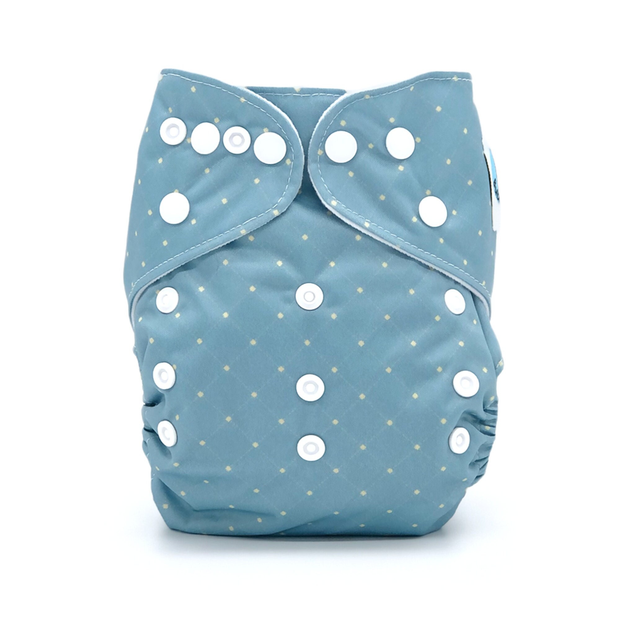 You will receive one pocket diaper in our light denim blue quilted pattern named "Wellington". Also included is one cloth diaper insert made with three layers of microfiber.